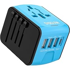 SAUNORCH Universal International Travel Power Adapter W/High Speed 2.4A USB-A, 3.0A Type-C Wall Charger, European Adapter, Worldwide AC Outlet Plugs Adapters for Europe, UK, US, AU, Asia-Black